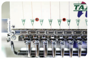 A sensor constantly monitors the thread movement. If the upper or lower thread is broken, the system instantly stops stitching, allowing correction and back up if needed to preserve stitch quality. The sensitivity is adjustable on the operation panel.
